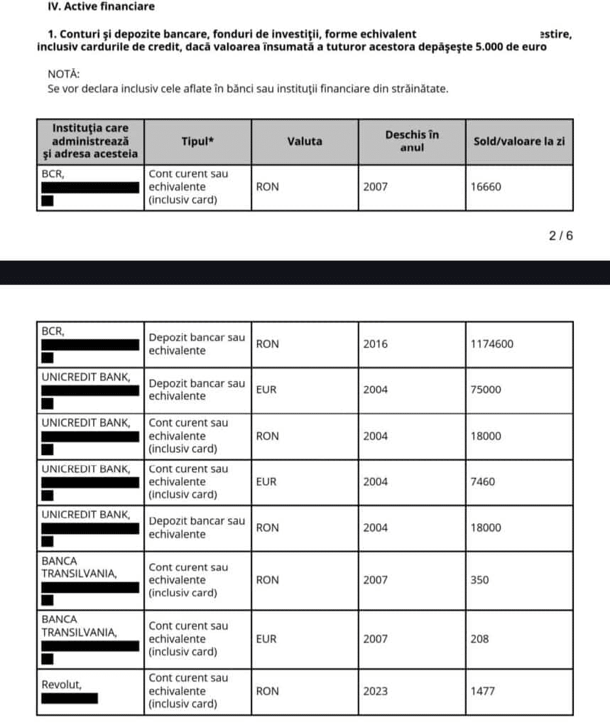 Conform declarațiilor de avere, în anul 2024, avea mai multe conturi bancare și încasa de la stat undeva la 53.000 euro, anual.