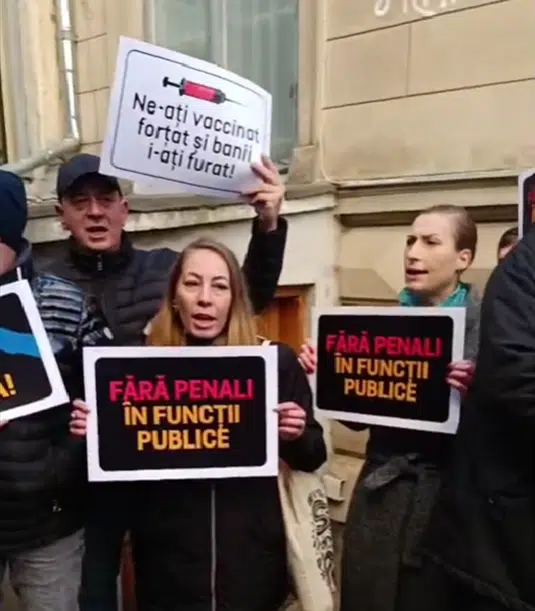 Partidul AUR, protest în fața sediului USR din Capitală: „DNA să vină să vă ia” / „Nu vrem să fim conduși de hoți” / „Afară, afară cu hoții din țară” / „PNL și USR aceeași mizerie”